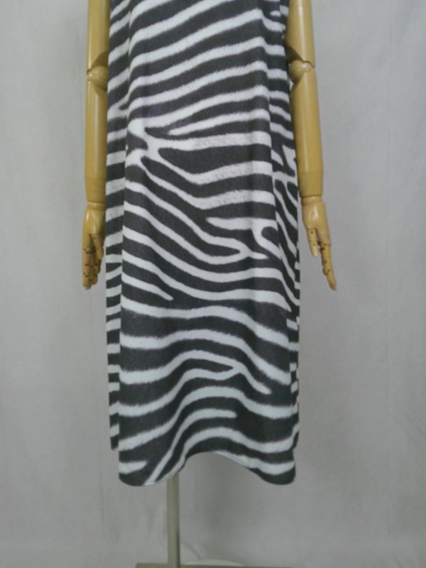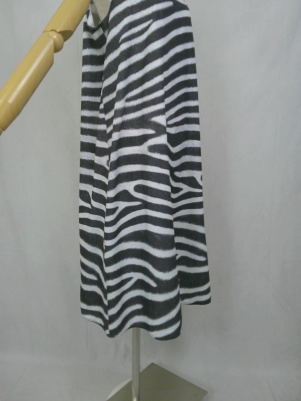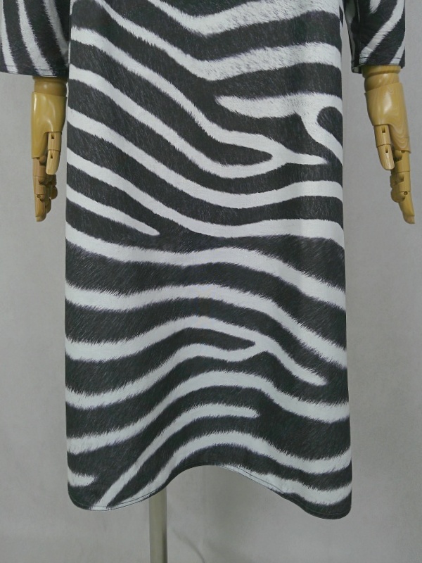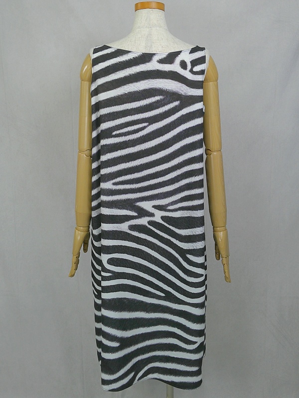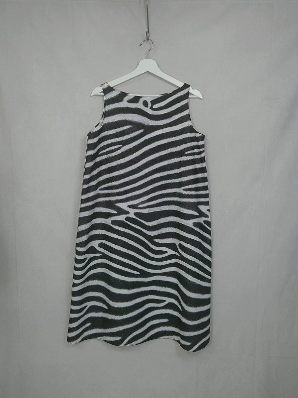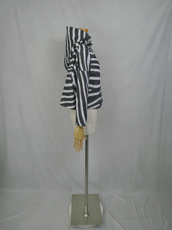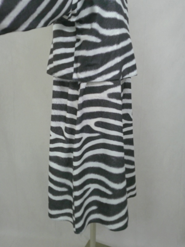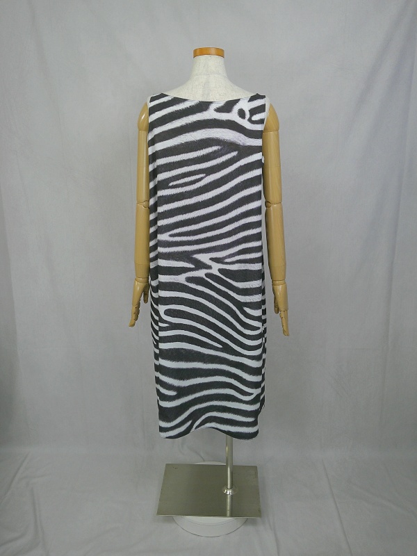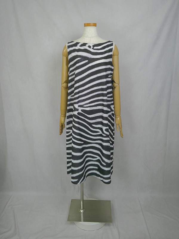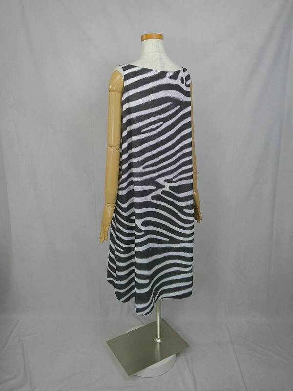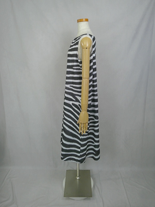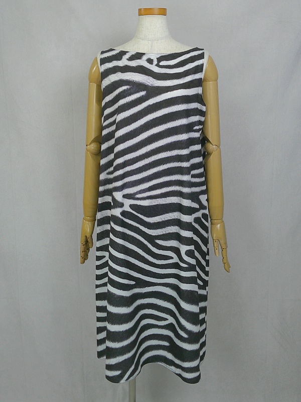 ゼブラ柄のショート丈フードブラウスは、胸の位置から入れたタックが生み出すキレイなシルエットや、内側に無地生地を用いたいろいろな表情を見せるフード、ドロップショルダー&すっきりとした袖口のデザインなどがオシャレに見せ、控えめに広がるAラインのミディ丈インナーワンピースとの組み合わせは、より高級感のあるエレガントな雰囲気を演出しています。