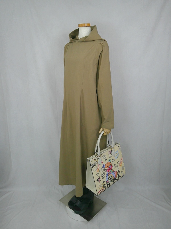 上質なウェザークロス生地で作りました、フードワンピースでございます。