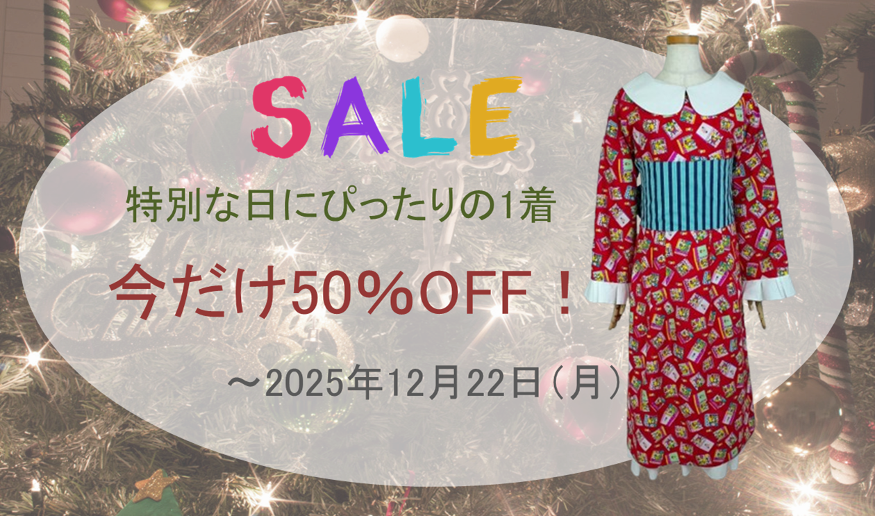 平素は格別のご高配を賜り誠にありがとうございます。このたび当店では、日頃のご愛顧に感謝を込めまして、実店舗およびオンラインショップにて、1着限定の、特別セールを実施いたします。”特別な日にぴったりのワンピース、1着限定50%OFF!” セール期間:~2025年12月22日(月)23時59分この機会に、ぜひご利用くださいませ。