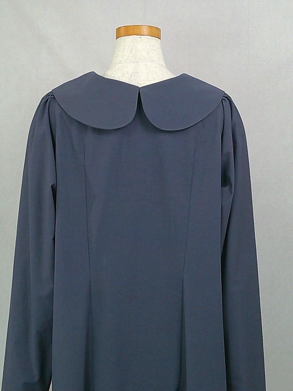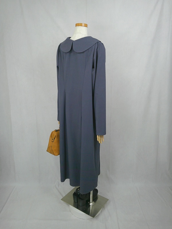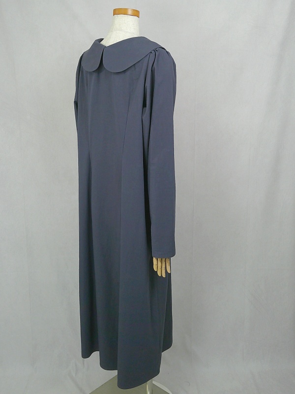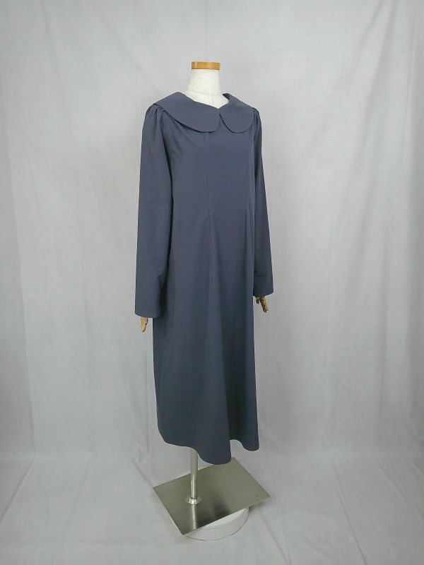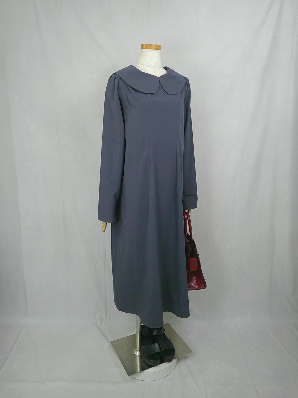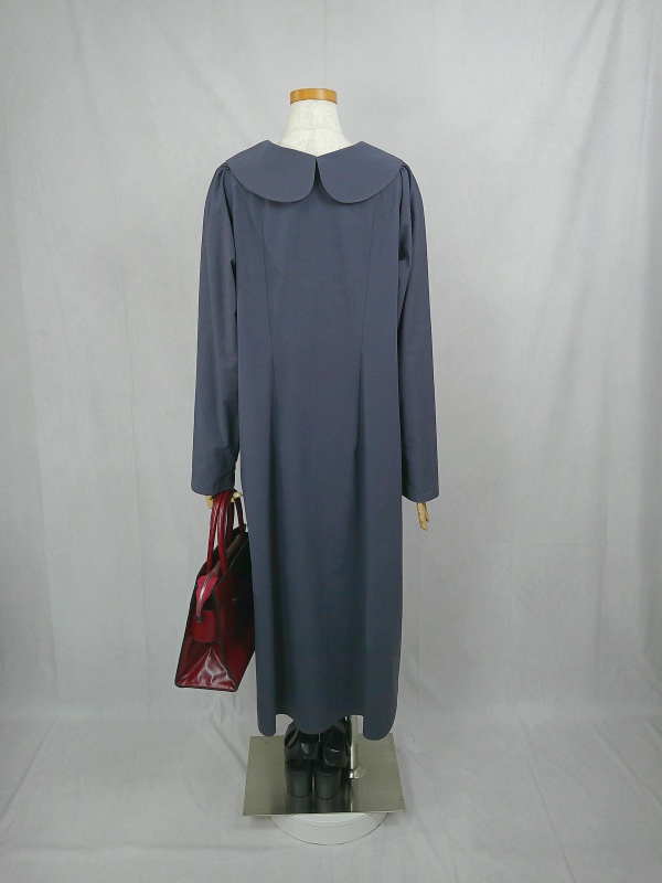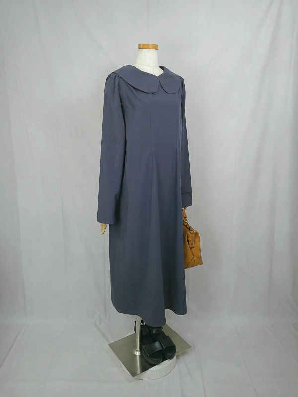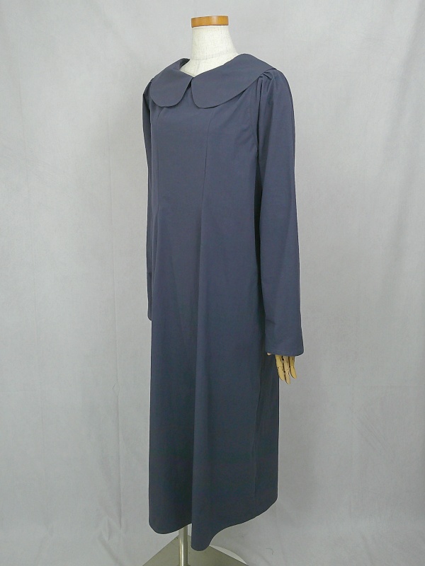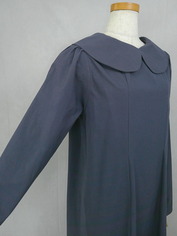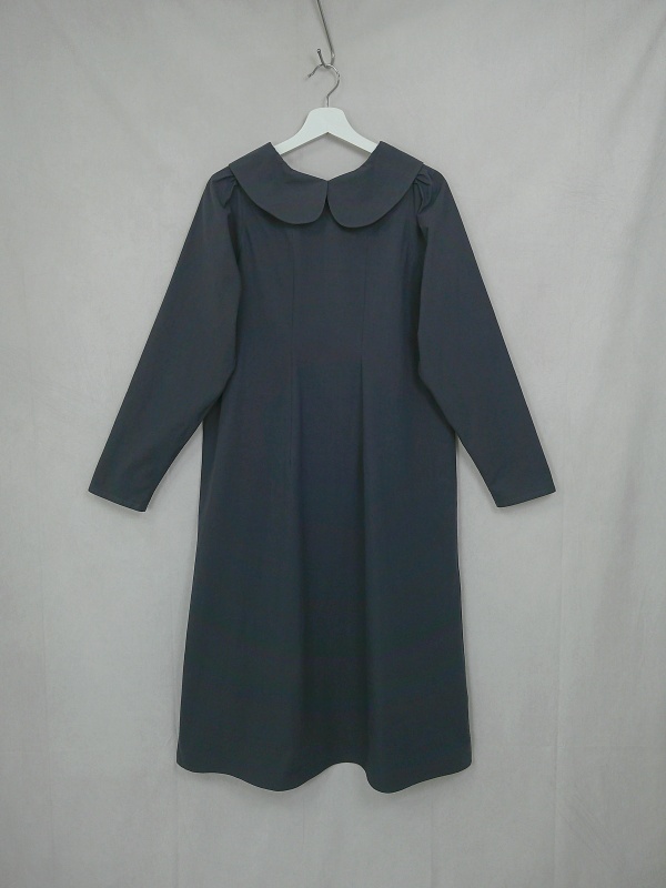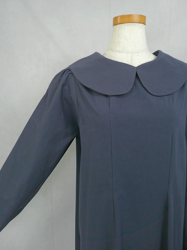 上質でハリのあるウェザークロス生地で作りました、丸襟ワンピースでございます。