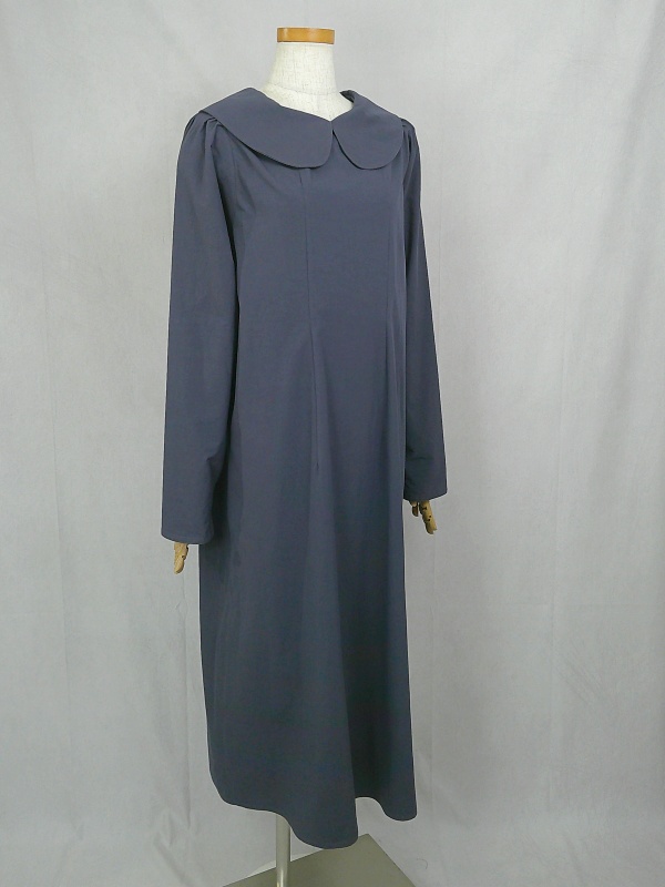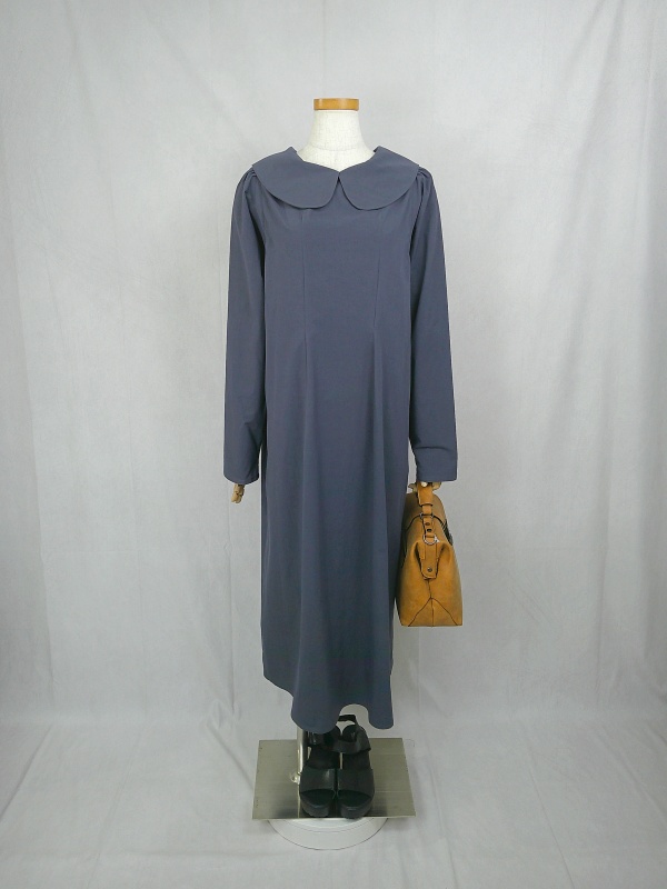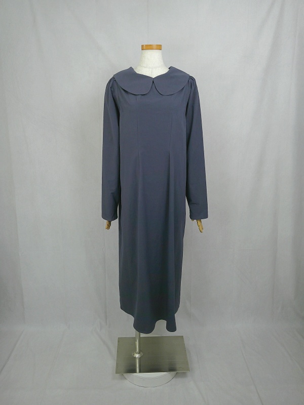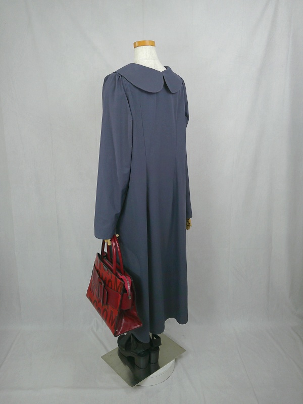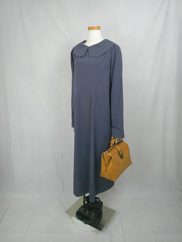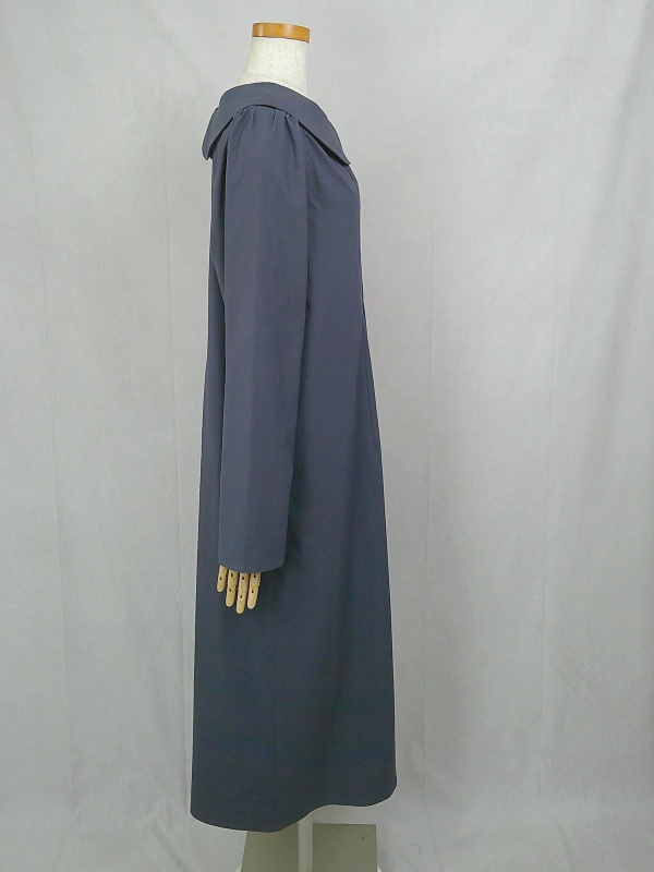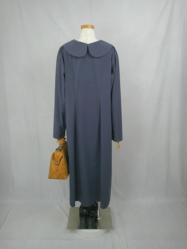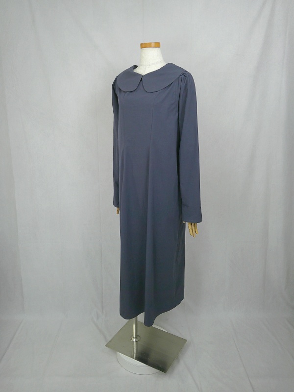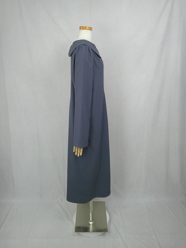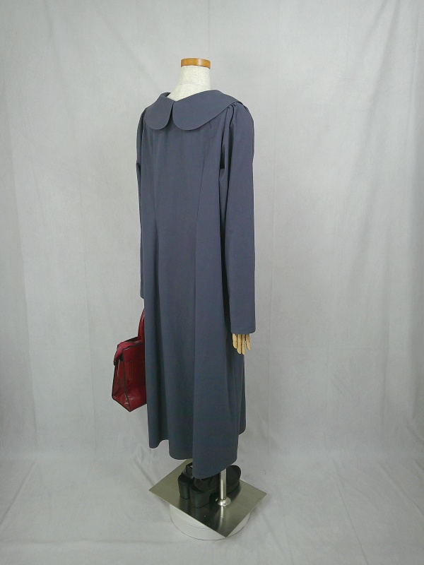 上質でハリのあるウェザークロス生地で作りました、丸襟ワンピースでございます。
