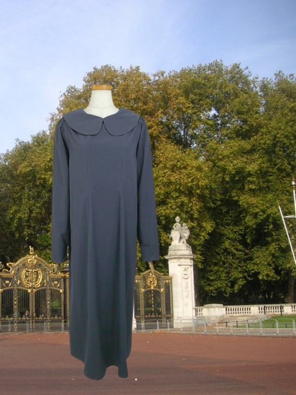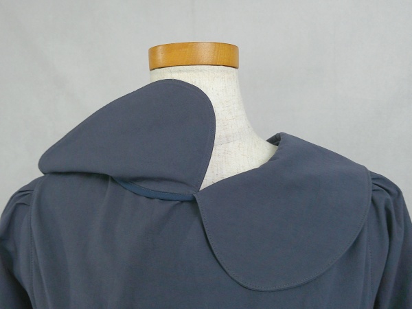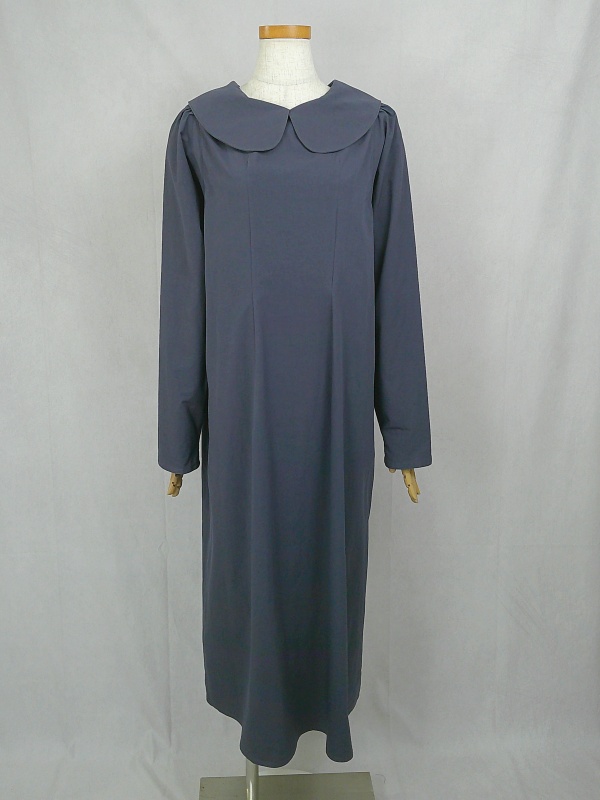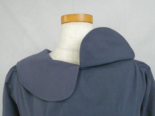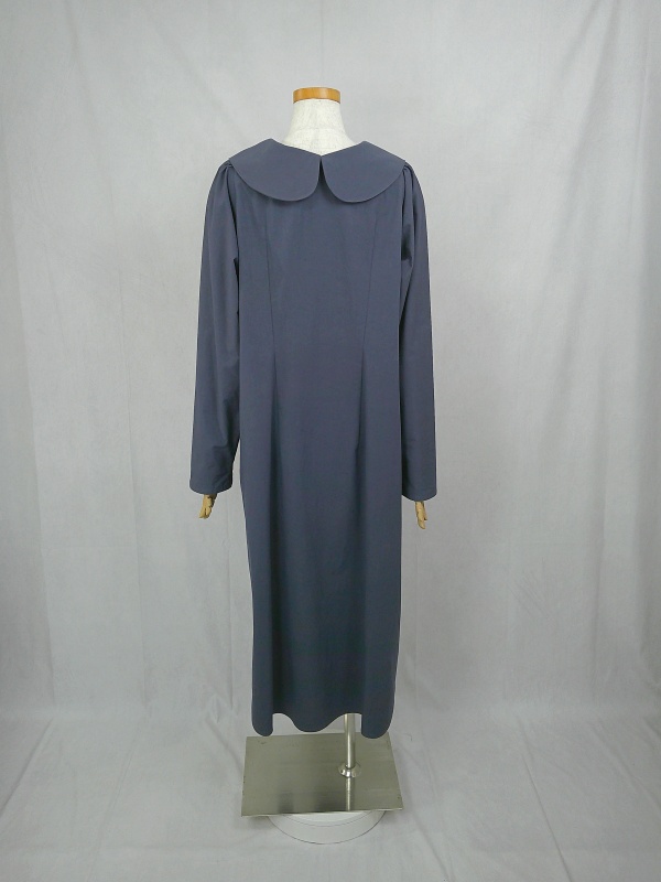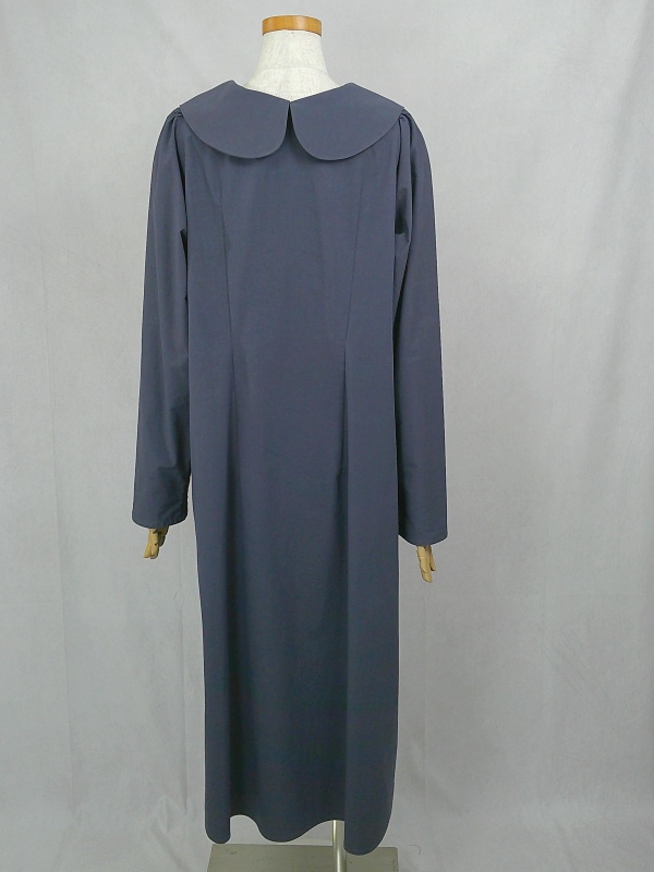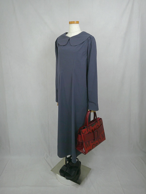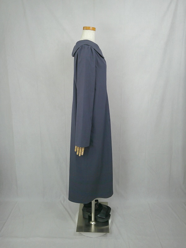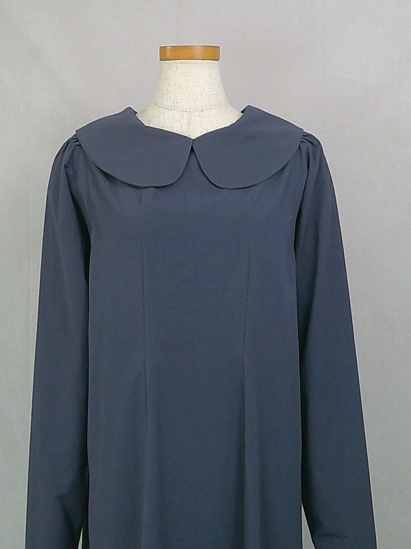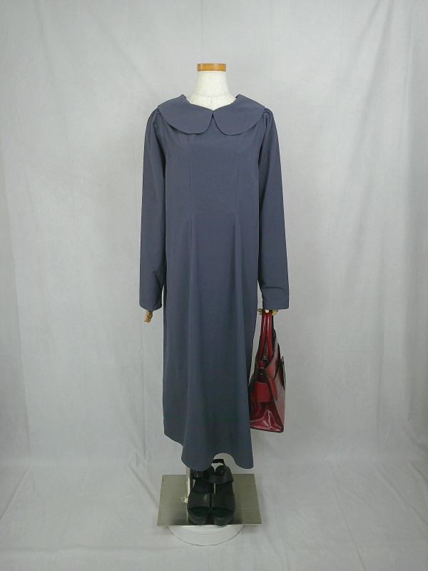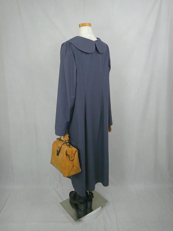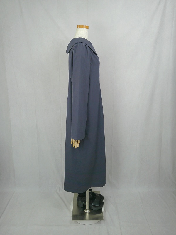 上質でハリのあるウェザークロス生地で作りました、丸襟ワンピースでございます。