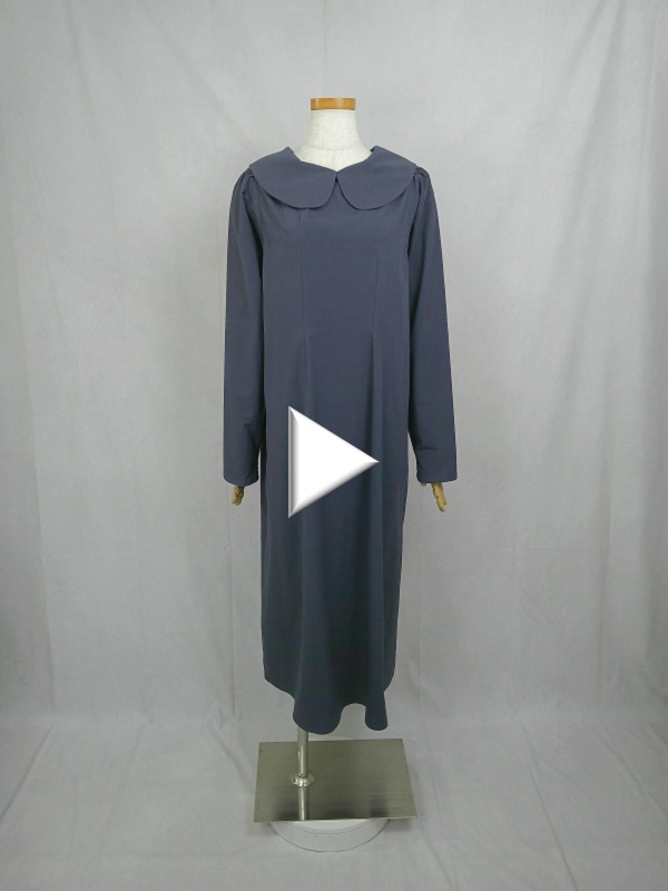 上質でハリのあるウェザークロス生地で作りました、丸襟ワンピースでございます。