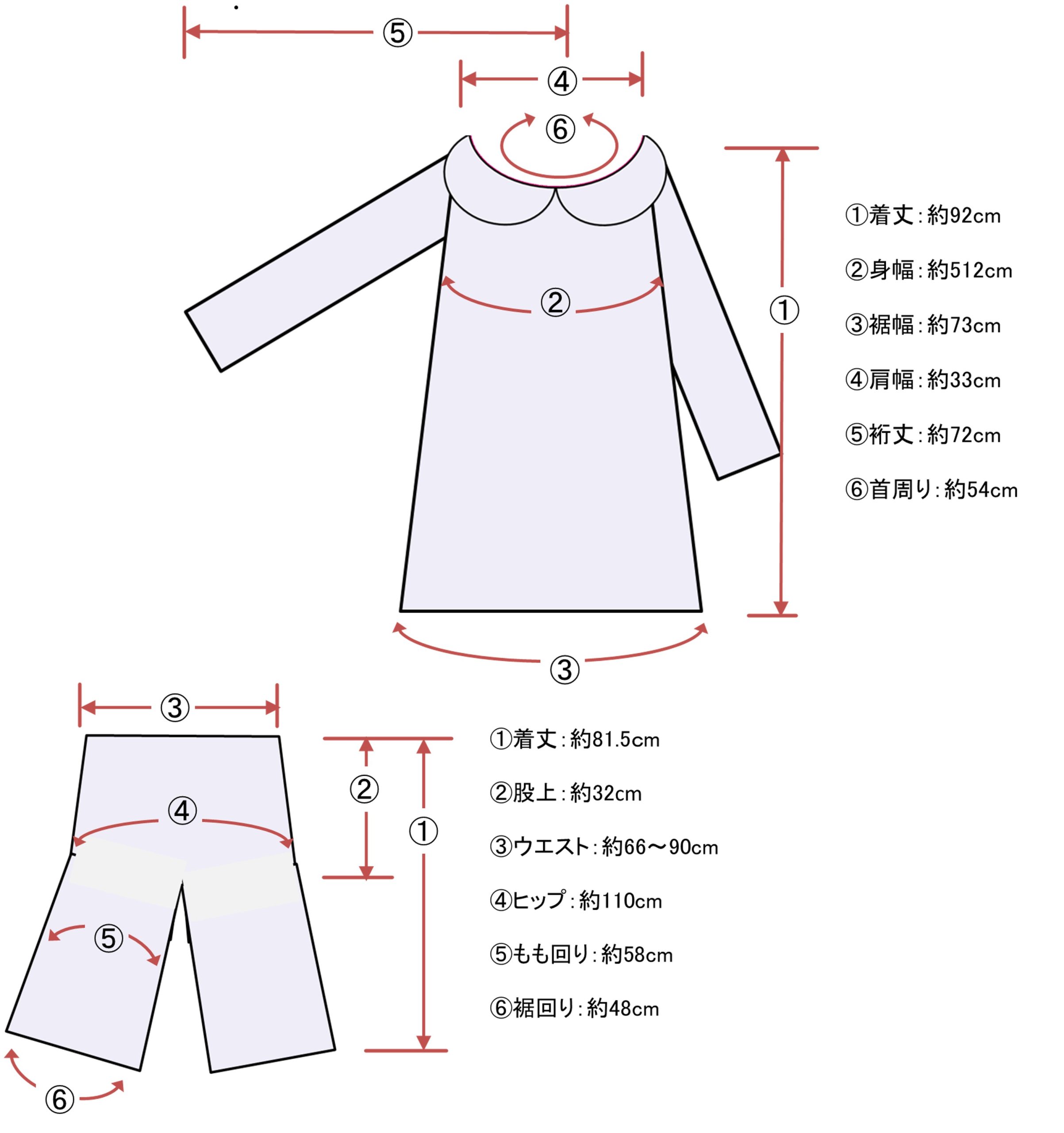 着丈:約92cm 身幅:約51cm 裾幅:約73cm 肩幅:約33cm 裄:約72cm 首周り:約54cm