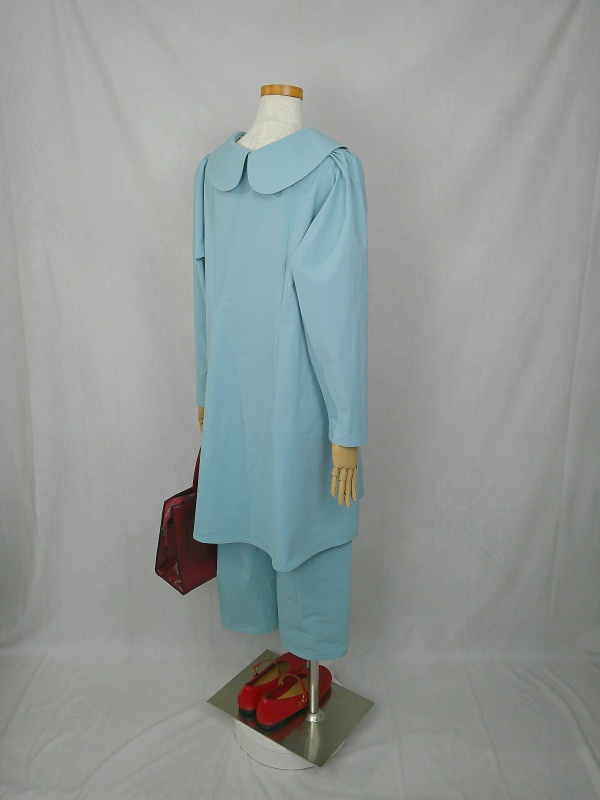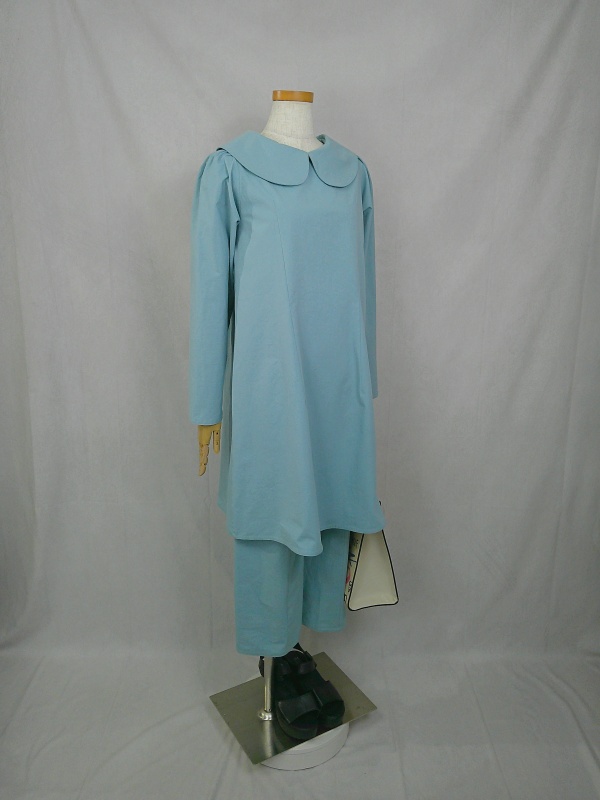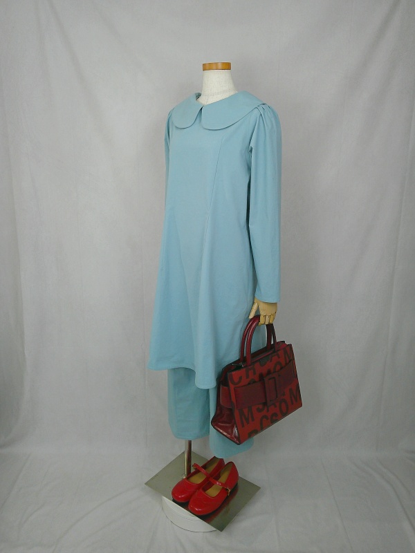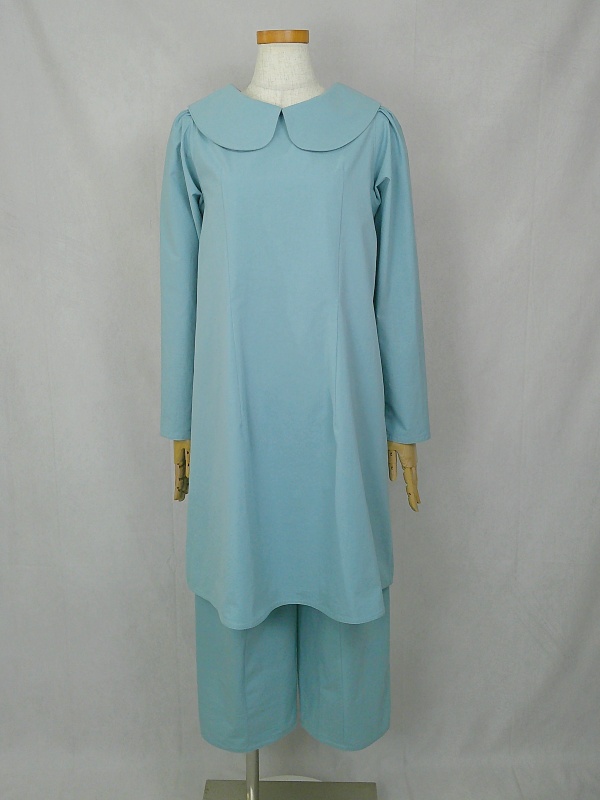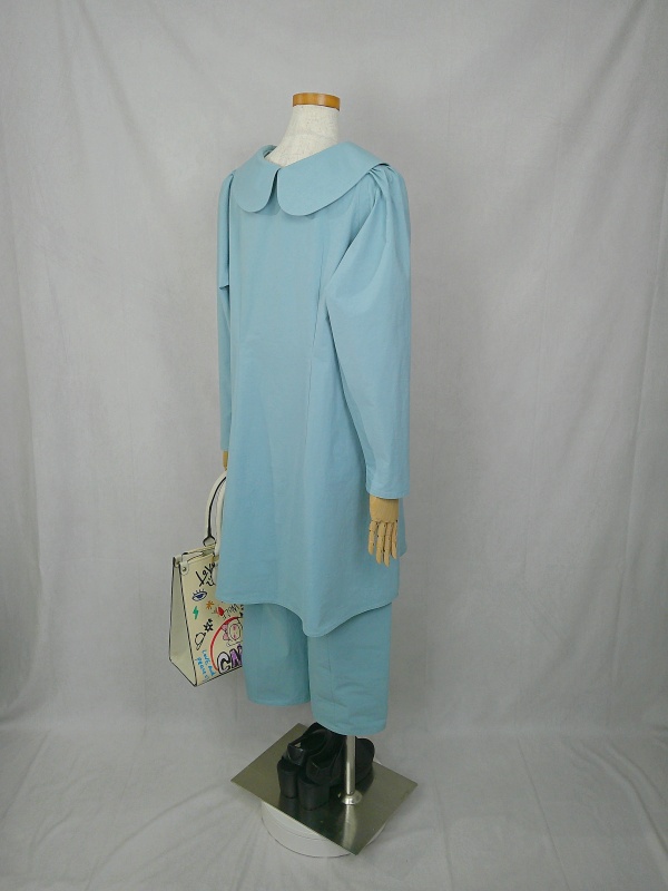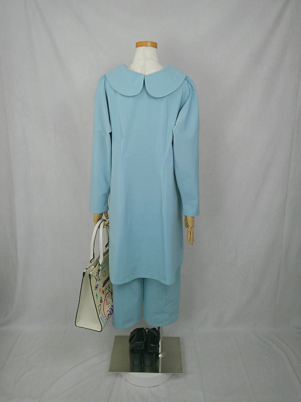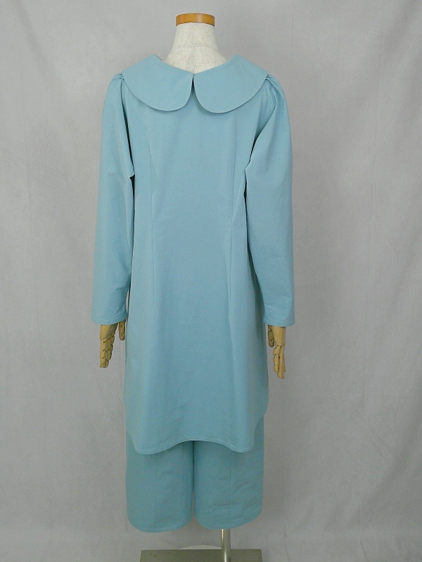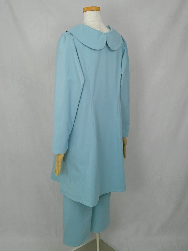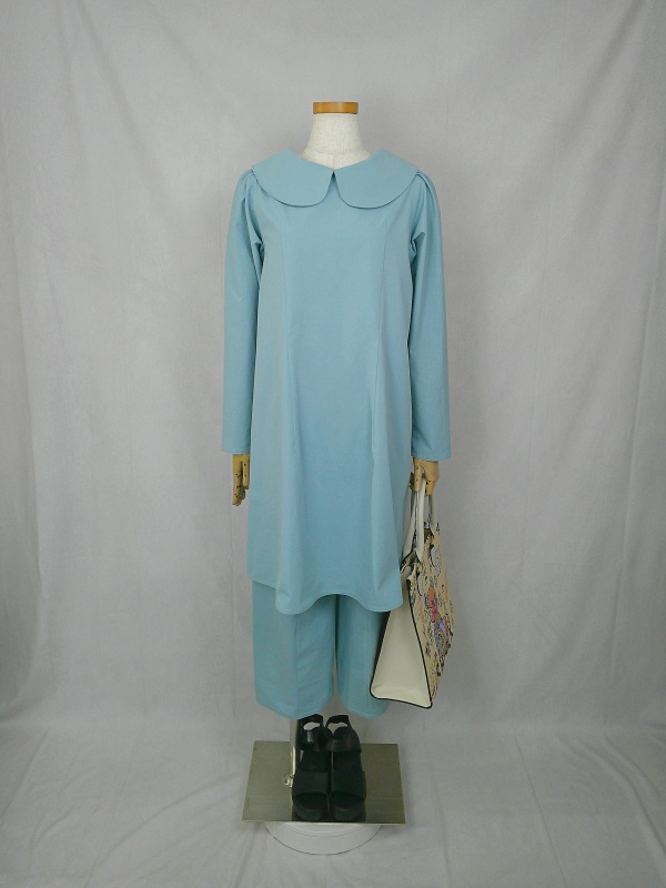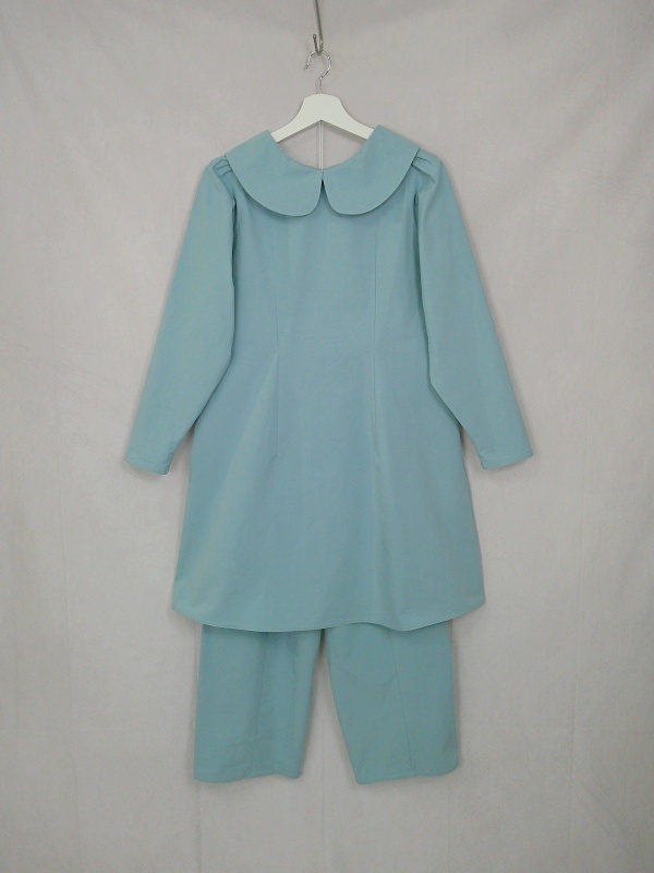上質なコットン100%のウェザークロス生地で作りました、丸襟セットアップでございます。