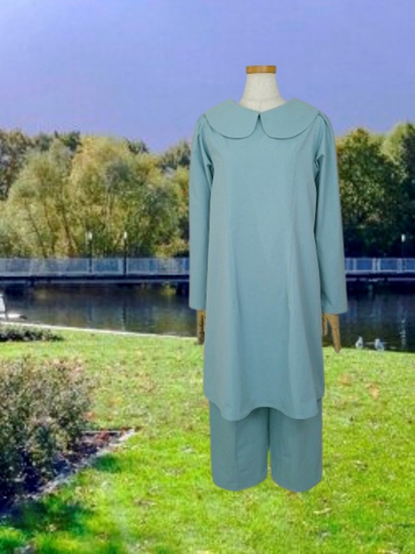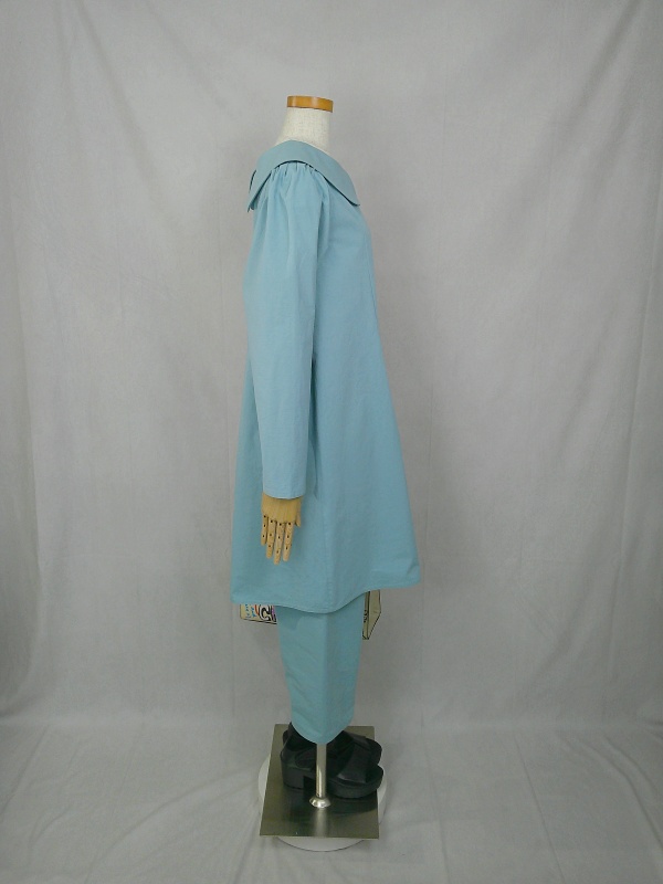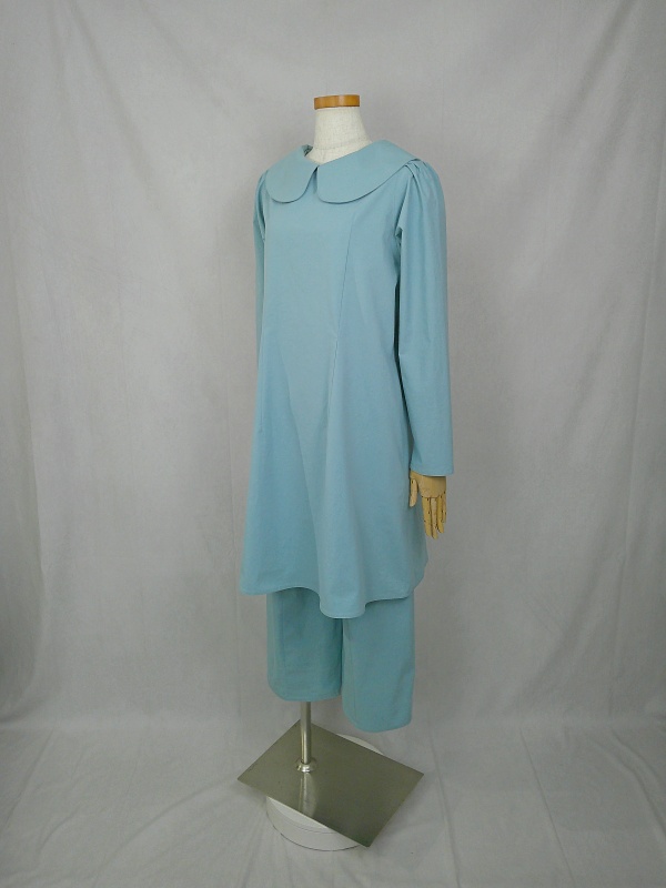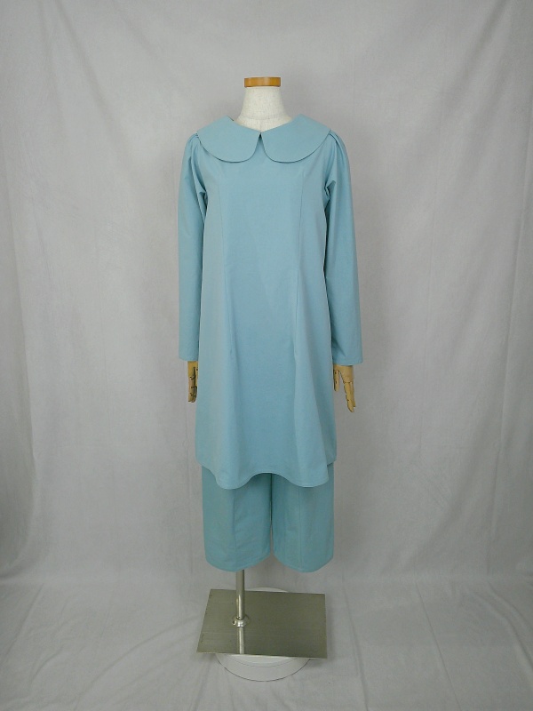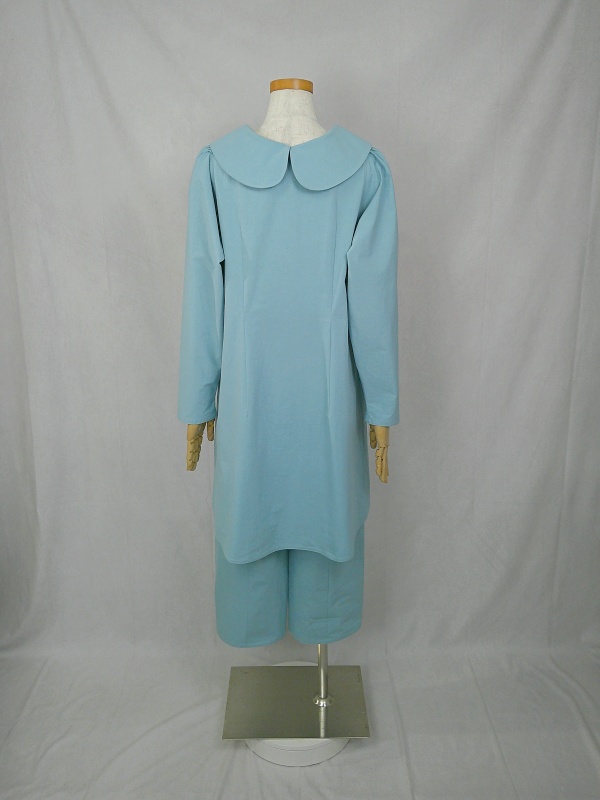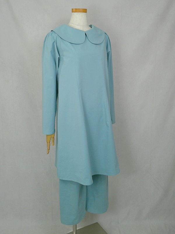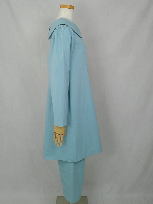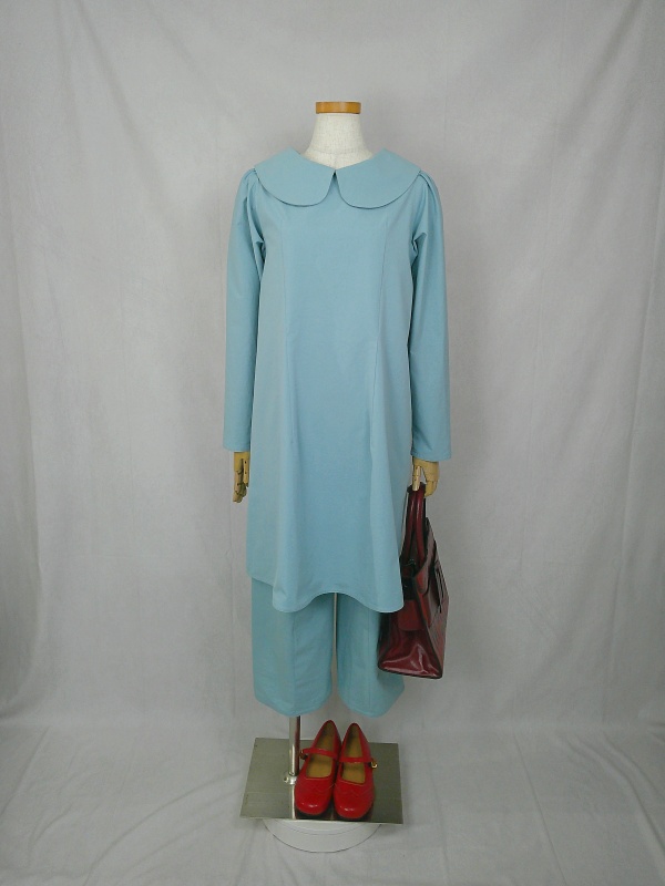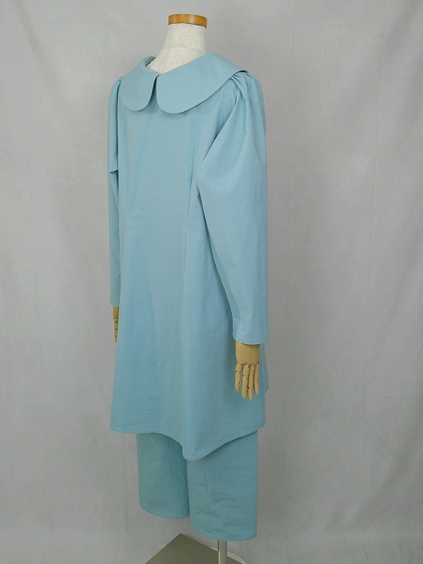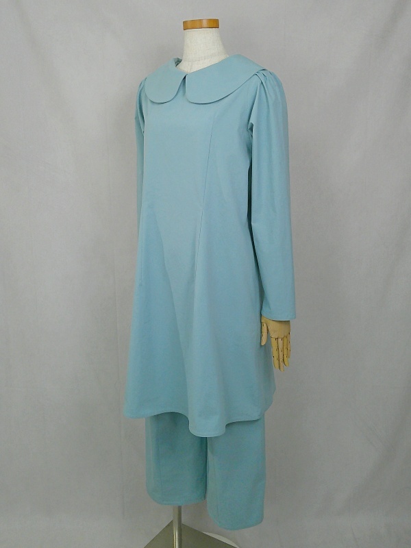 上質なコットン100%のウェザークロス生地で作りました、丸襟セットアップでございます。