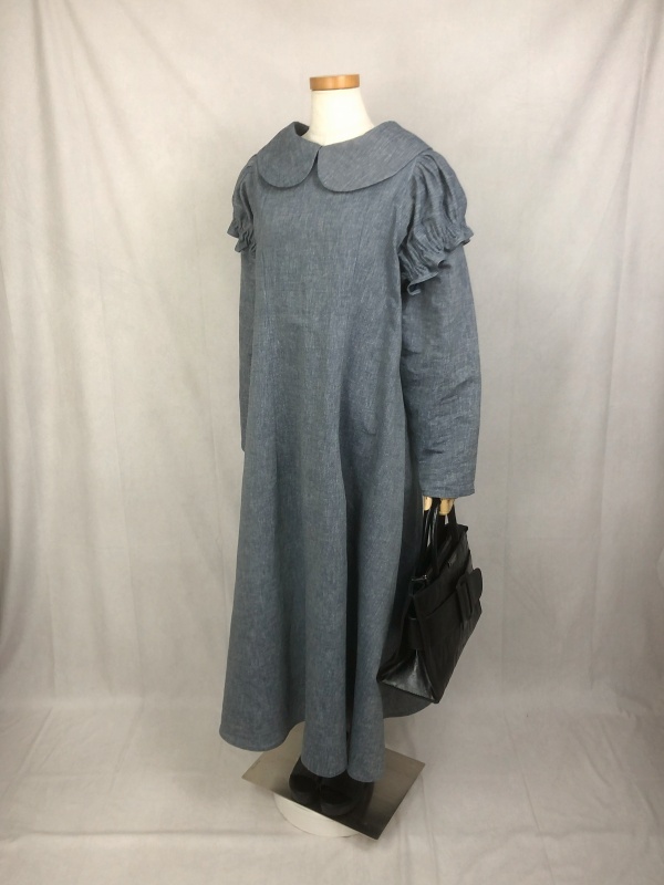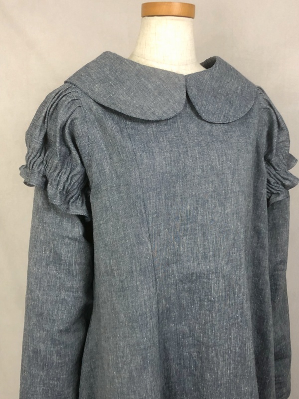 上質で柔らかなデニム生地を使用したコットン100%の丸襟ワンピースでございます。