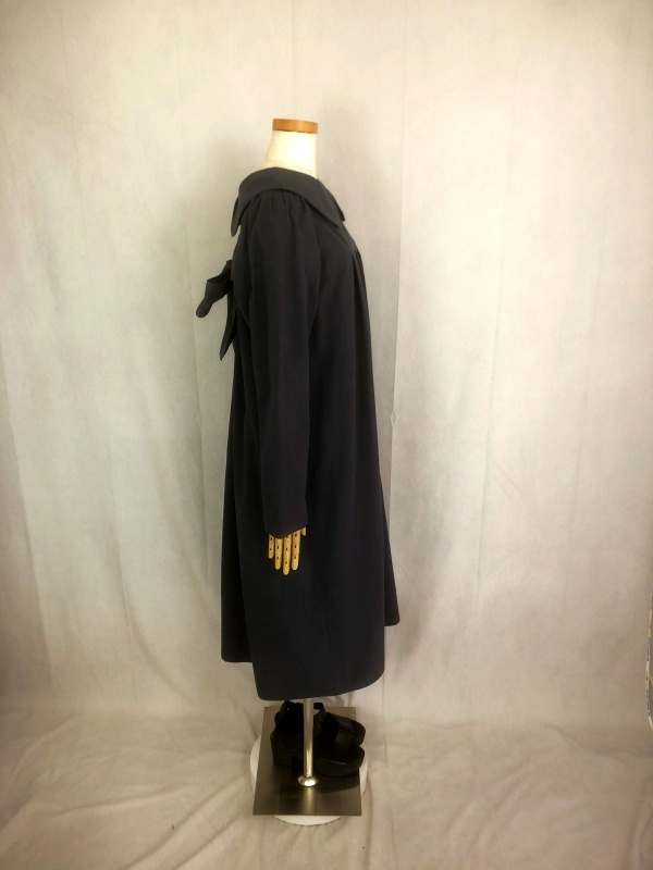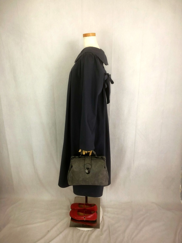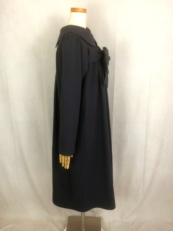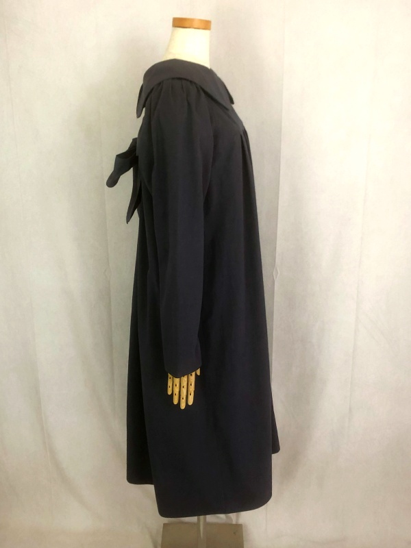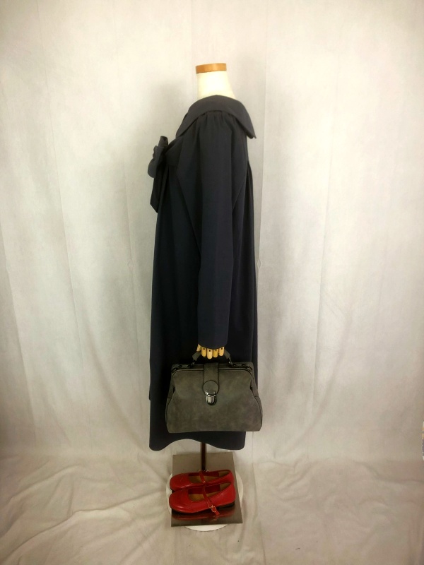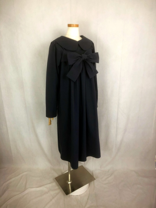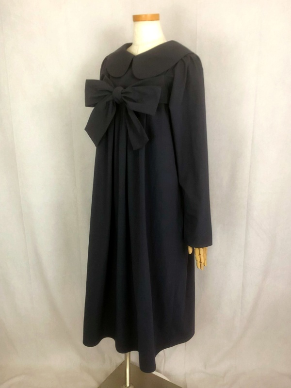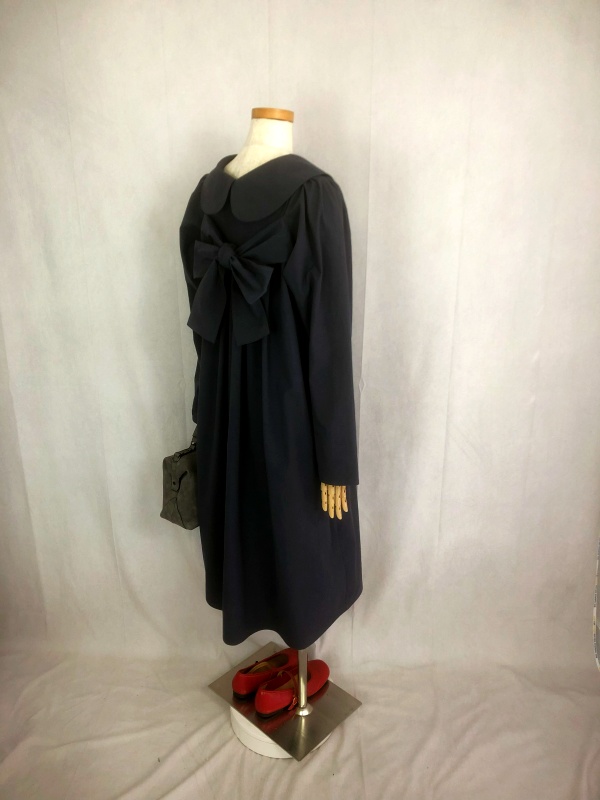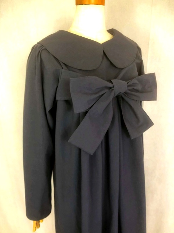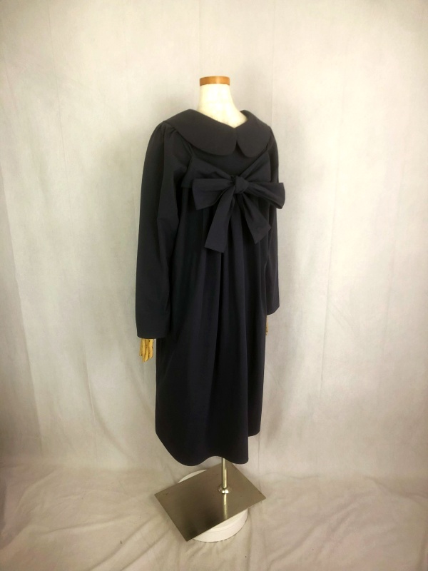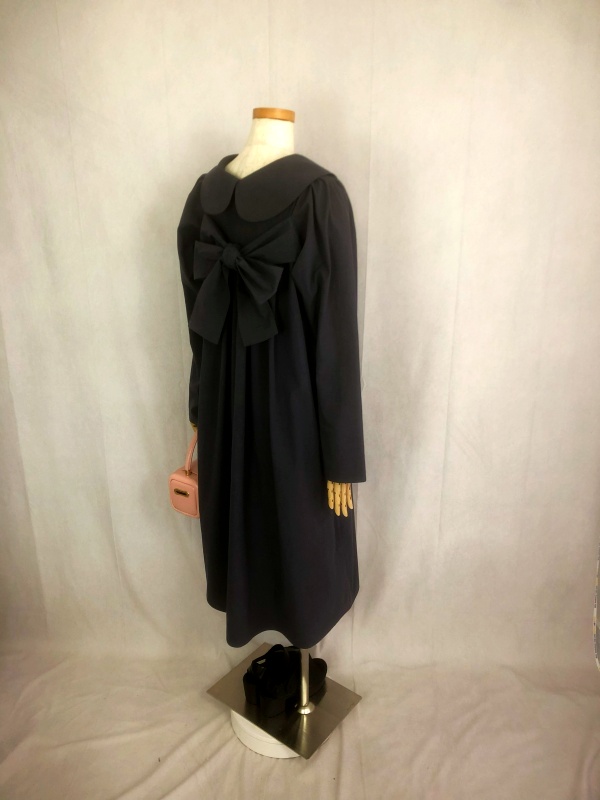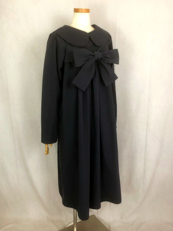 上質なシーチング生地を使用したコットン100%の丸襟ワンピースでございます。胸の位置に施したリボンを結んで生まれるシルエットは、チャコールグレーの落ち着いた色合いが見せる上品な雰囲気の中に、大人のかわいらしさを演出しています。リボンの結びを前後どちらに持ってきてもかわいい素敵なスタイルは、季節を問わず、様々なシーンで活躍しそうです。